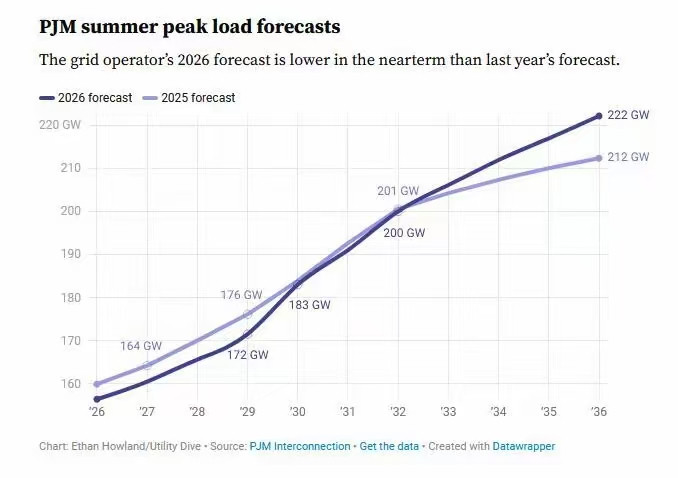 电力对AI的阻碍,从来不是简单的“总量不足”,而是供需结构、电网适配与能效转化的多重失衡。北美最大电网运营机构PJM旗下超三成输电线路已服役超50年,备用率仅维持在17%的安全红线边缘,这样的老旧电网要承接未来十年年均4.8%的AI驱动用电增长,输电通道拥堵、变电容量不足的物理短板,绝非短期改造就能弥补。