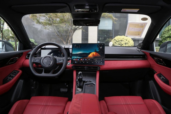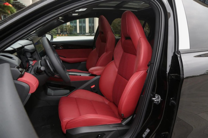 看完了性能和驾控表现,紧接着咱们再来看内饰部分,坐进车内其实能够发现,领克03的内饰设计和用料也很符合其运动的调性,前排中控台采用了不对称设计,带有运动座椅、运动方向盘、中置挡把,加之皮/翻毛皮混搭材质、缝线工艺,营造出了挺不错的驾控氛围。