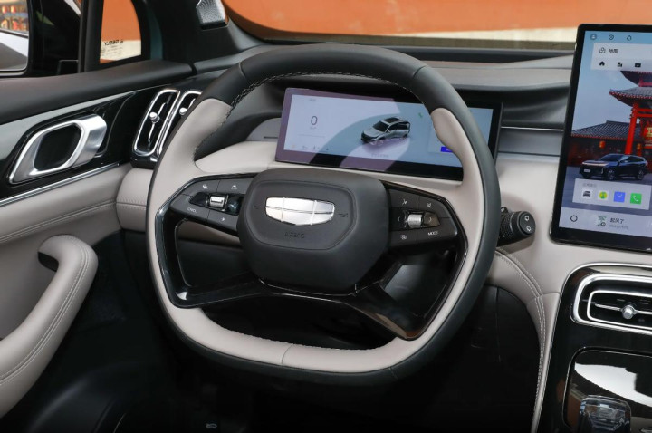转向手感方面,2025款吉利博越L提供了多种可调节模式。切换到舒适模式的时候,方向盘手感轻盈,相信小女生也能轻松驾驭,适合日常通勤代步;接着换到运动模式后,方向盘阻尼感明显加重,指向性变得更为精准,路感反馈丰富,给驾驶者一种“人车合一”的沟通感。和之前试驾过的一批国产SUV相比,博越L的转向虚位控制得非常小,导致车头转向灵敏,这在同级别以舒适为导向的SUV中可不多见。